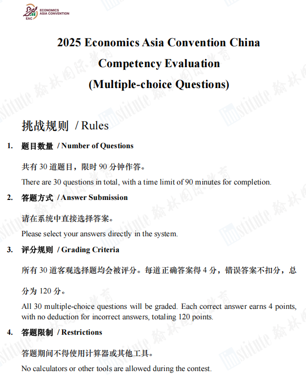 样题共包含30道客观选择题(Multiple Choice Questions),每道题4分。