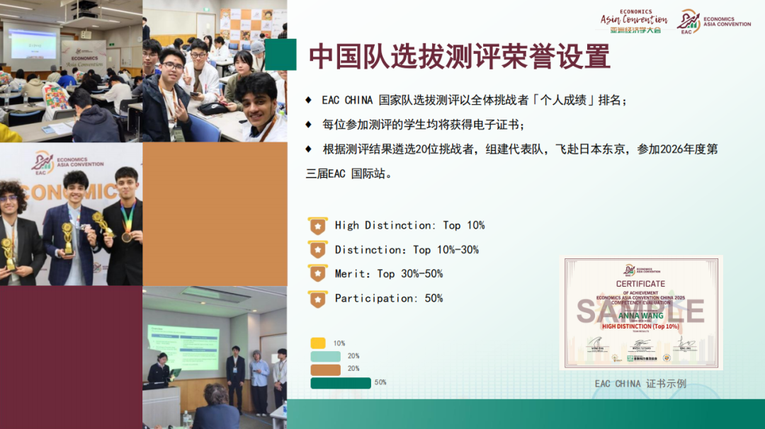参与EAC意味着获得了一个展示个人经济学素养的平台,组委会设置了多个奖项等级,包括High Distinction、Distinction、Merit和Participation等。